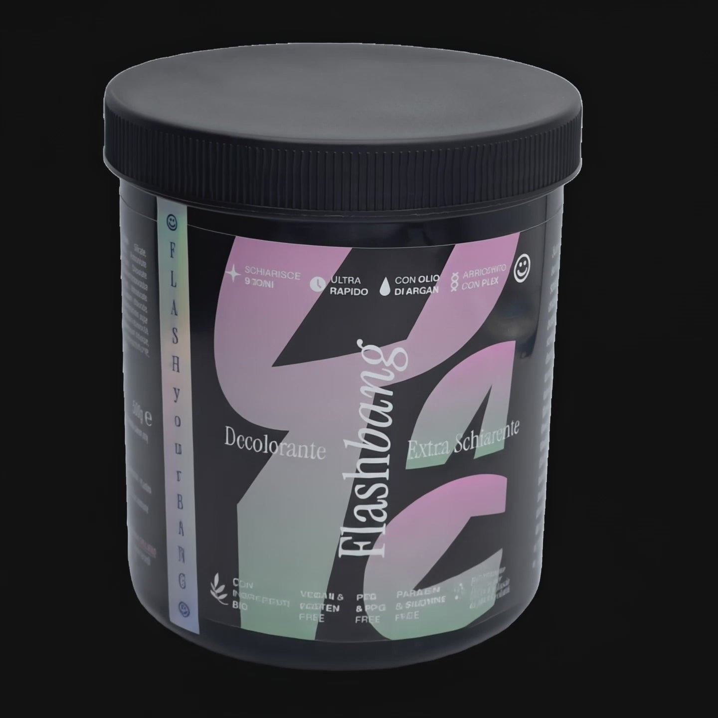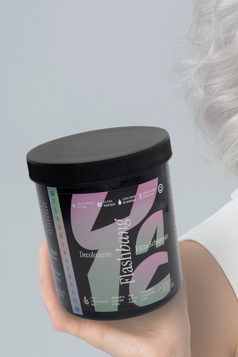 Flashbang è un decolorante super potente che schiarisce fino a 9 toni, senza danneggiare i capelli grazie alla sua formula ricca di attivi lenitivi. La sua consistenza densa e facile da miscelare lo rende ideale per correzioni precise e rapide.