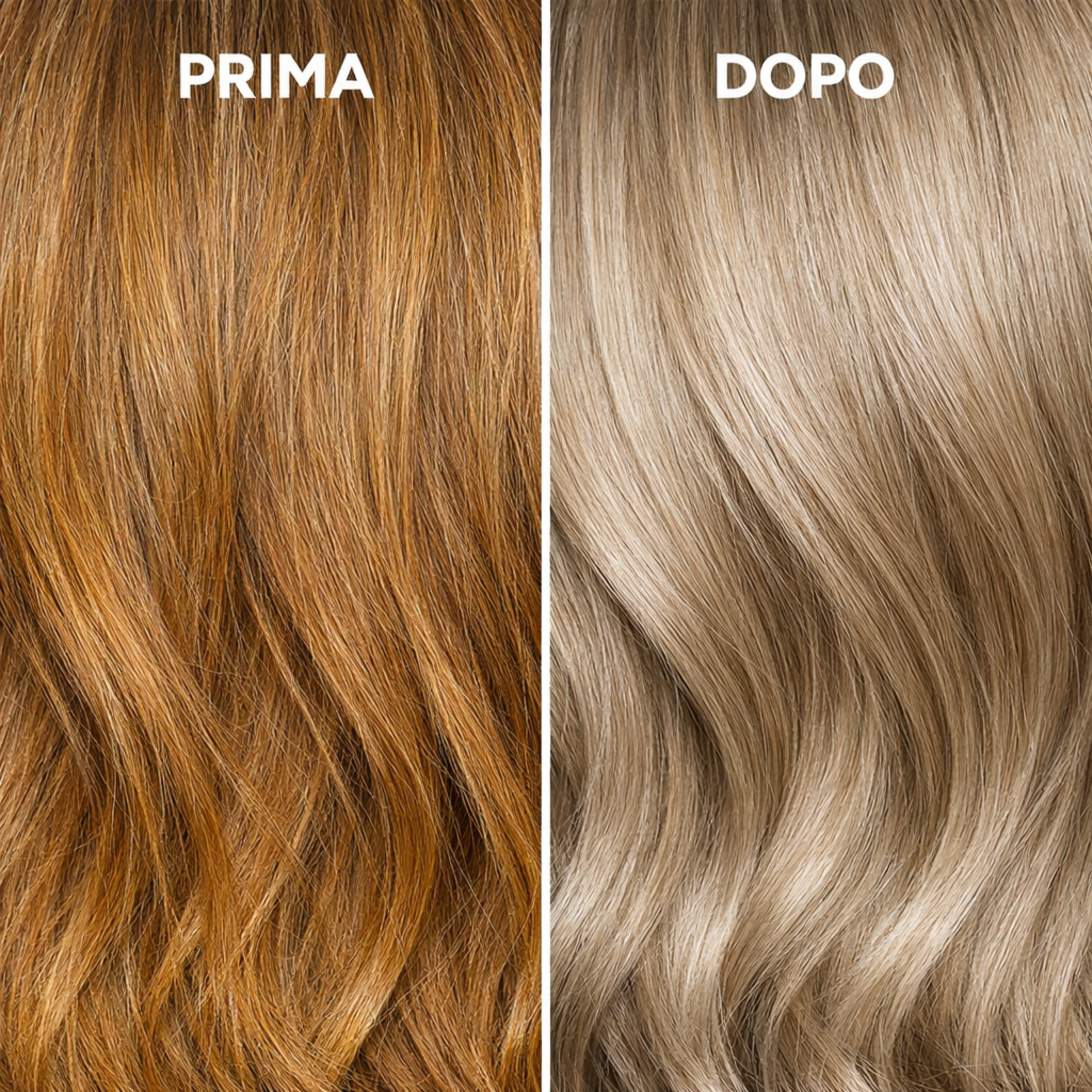 - Risultato: Una tonalità sabbia dorata perla che neutralizza l'arancione e illumina i capelli con un tocco di eleganza e raffinatezza.